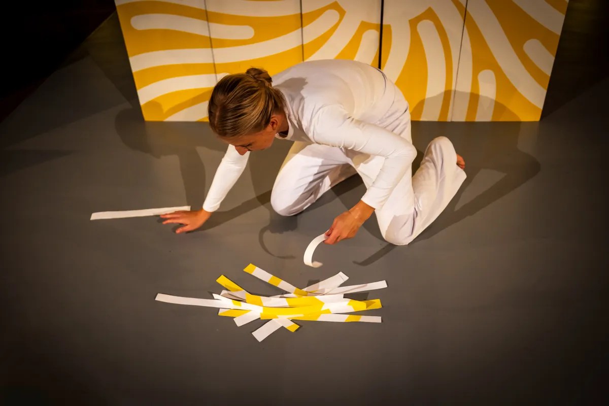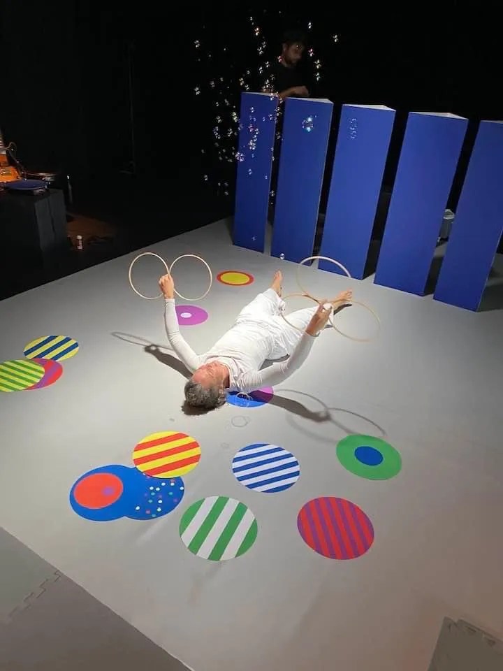 Dans un espace sonore enveloppant, deux interprètes proposent une première découverte théâtrale joyeuse, riche et stimulante. Un jeu qui n’impose rien, mais qui invite. Un jeu avec des mots, des sons, des couleurs et des mouvements. Autour de trois comptines poétiques, trois scénographies se déploient, trois univers prennent vie. L’enfant réagit. Invités à découvrir la beauté de la simplicité qui nous entoure et à explorer leur propre univers intérieur, les tout-petits ont ici l’opportunité de vivre une expérience sensorielle unique et de savourer, grâce à l’invention théâtrale, les richesses de leur imagination intuitive.
